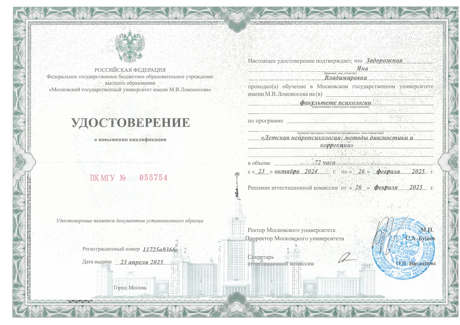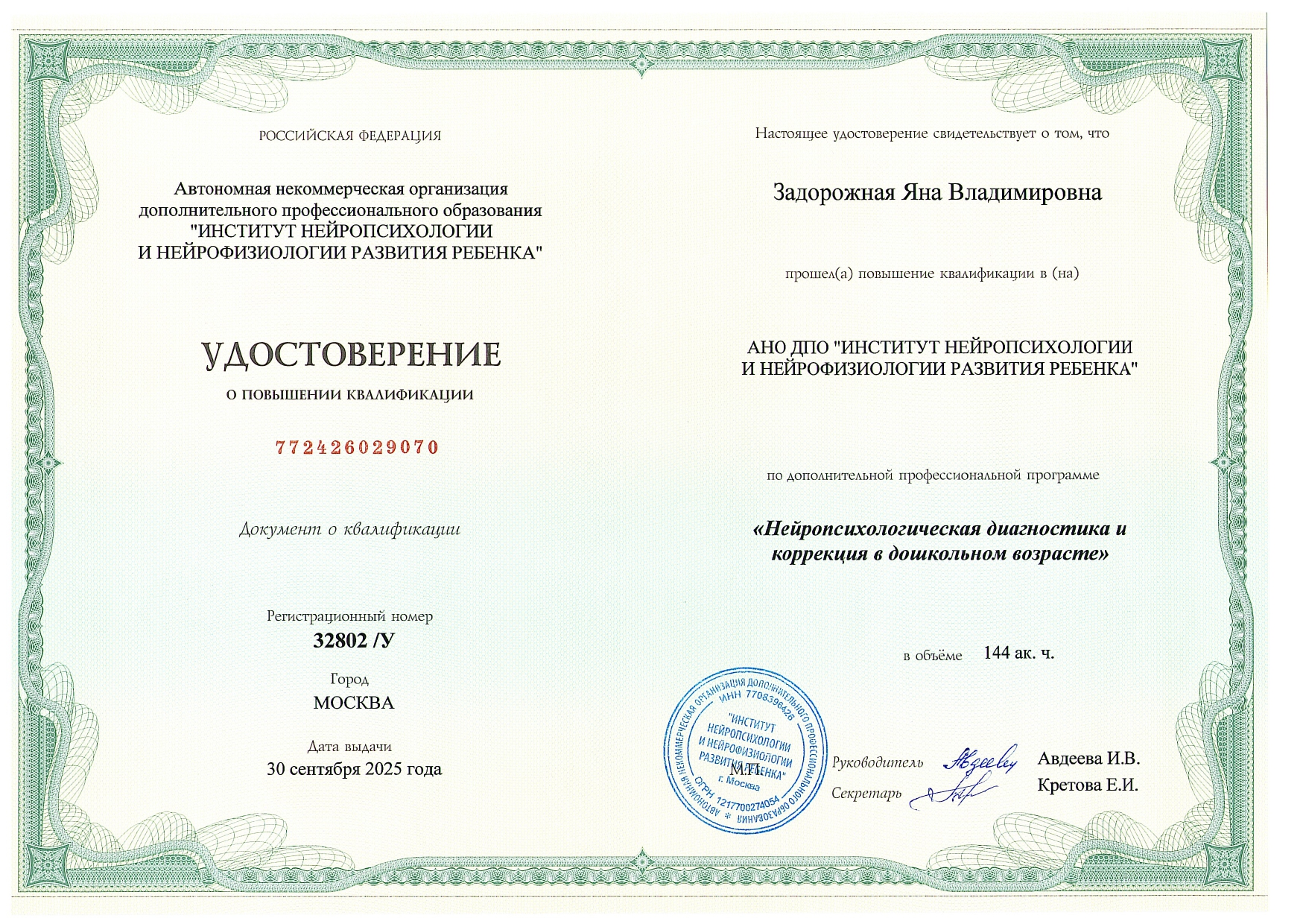 Задорожная Яна Владимировна